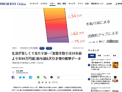 来自相互联系的文字:【悲伤的消息】日本人的实际收入在 24 年中减少了 XX 万日元……