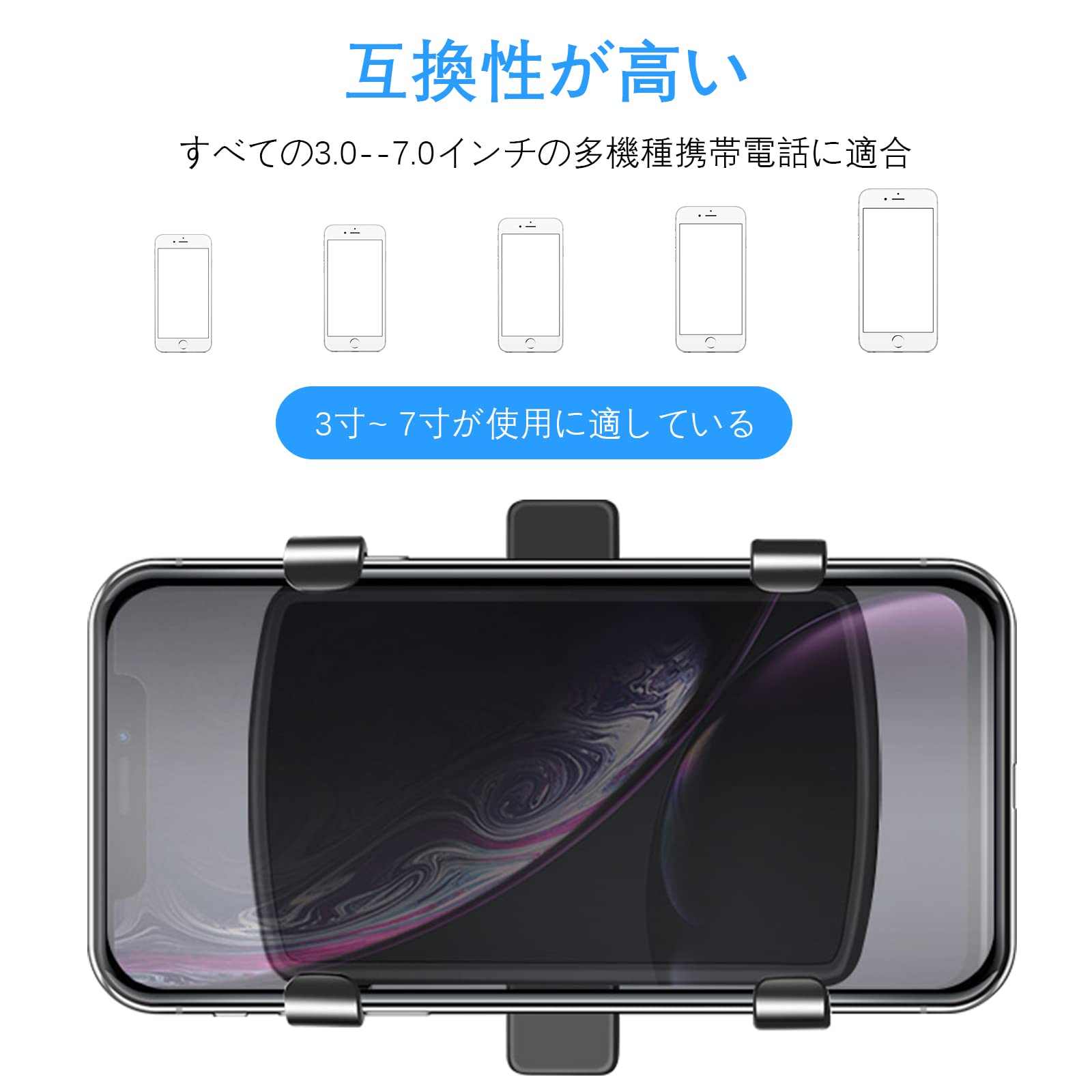- 【ワンクリック自動固定】側面のボタンで簡単に固定・分解できます。このボタンを押すと、スマートフォンを固定するためのアームが0.1秒以内に自動的に開き、スマートフォンを入れると自動的にロックされます。重力、電気、磁石のホルダーとは異なり、強力なバネで電話をしっかりと保持できます。
