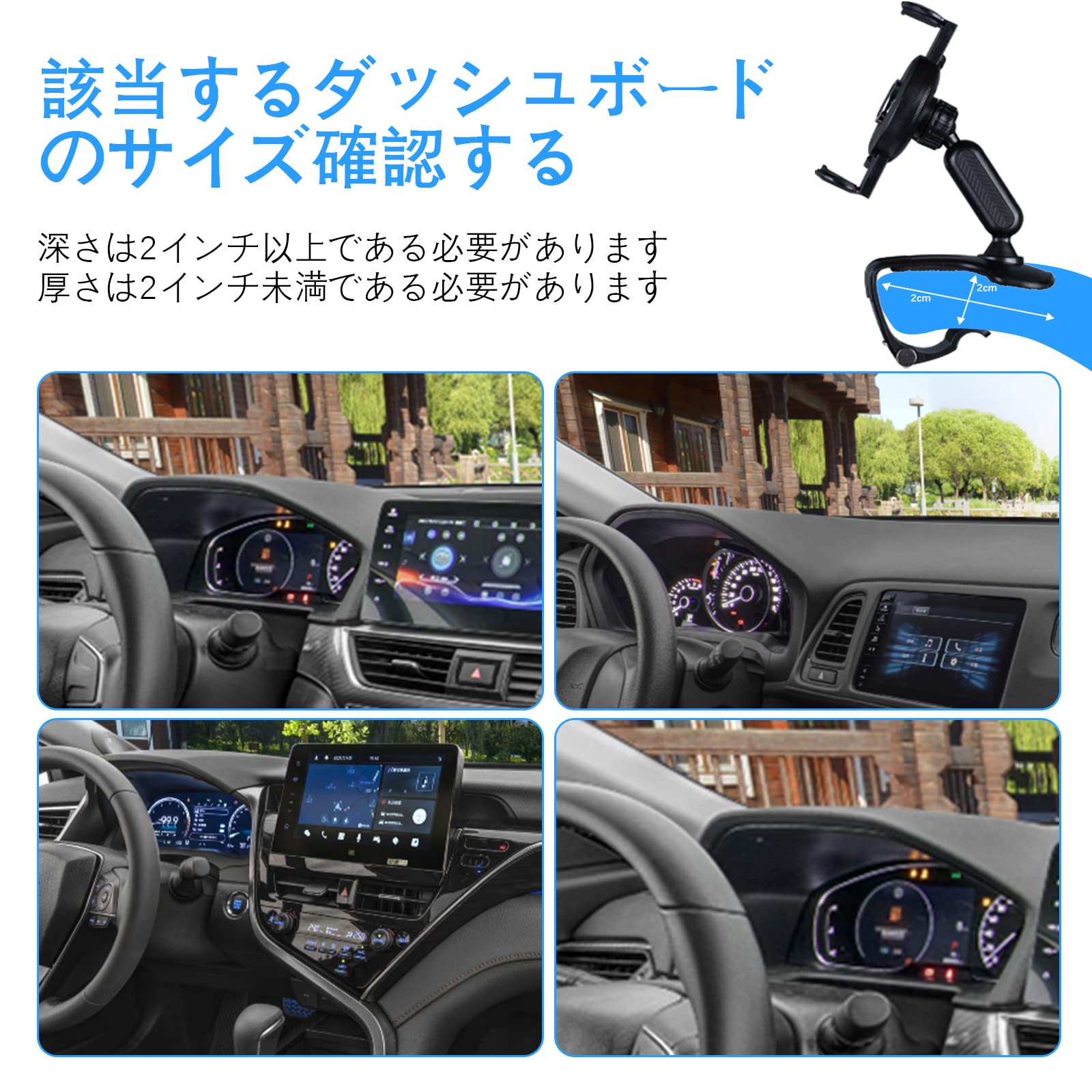- 【幅広い互換性】全車種/スマートフォン用車載ホルダー/携帯スマホ対応:iPhone13/ iPhone12/11/X/XS/Sony/Samsung/HUAWEI/Oneplus/SAMSUNG Galaxyなど4.7~7インチの携帯電話に合う。ご注意:対応する車種のダッシュボードの幅は2インチを超えてはなりません。 ご購入の際は、ダッシュボードの幅と深さをチェックして、正しい商品サイズをご確認のうえお求めください。(注:ダッシュボードの厚さは2インチ以内である必要があります)。