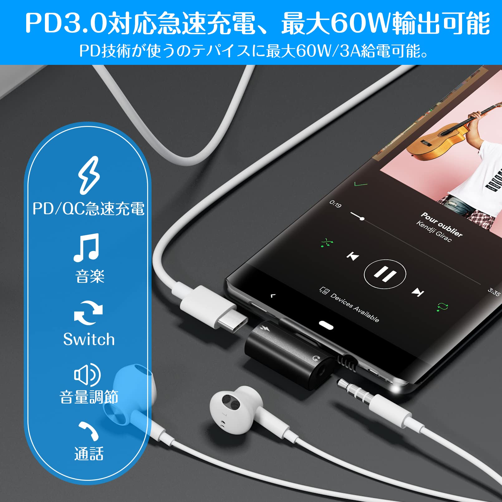 - 【PD60W急速充電・ 安全充電】本3.5mmイヤホン変換ケーアメリカから輸入されたのチップを採用して、最短距離で超ミニデザインで最大60Wの充電器を使用してPD/QC急速充電を実現します。(充電ケーブル、充電器、装置は、意図した効果を達成するためにPD急速充電をサポートしなければなりません)(ご注意:3.5mmポート本体のスマートフォンには対応しておりません。)