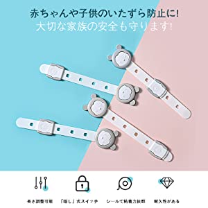 - 【子供安全対策·地震対策】ロックを解除しないと開かないようにすることで、窓·引き出し·冷蔵庫を開けることが好きな赤ちゃんの指はさみを防止し、予期せぬ危険から守ります。地震の際の散乱もよく防止し、ペットのいたずら対策にも有効です。