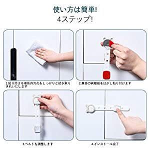 - 【指押し隠し式スイッチ】使用方法によると、片手で2本の指で上下に押すだけで、大人でも簡単に開閉できる指押し隠し式スイッチになり、賢い小さな探検家にもスイッチ位置がわかりにくく、大人でも簡単に開ける真似ができるベビーロックで、子どもたちに安心・安全な環境を。