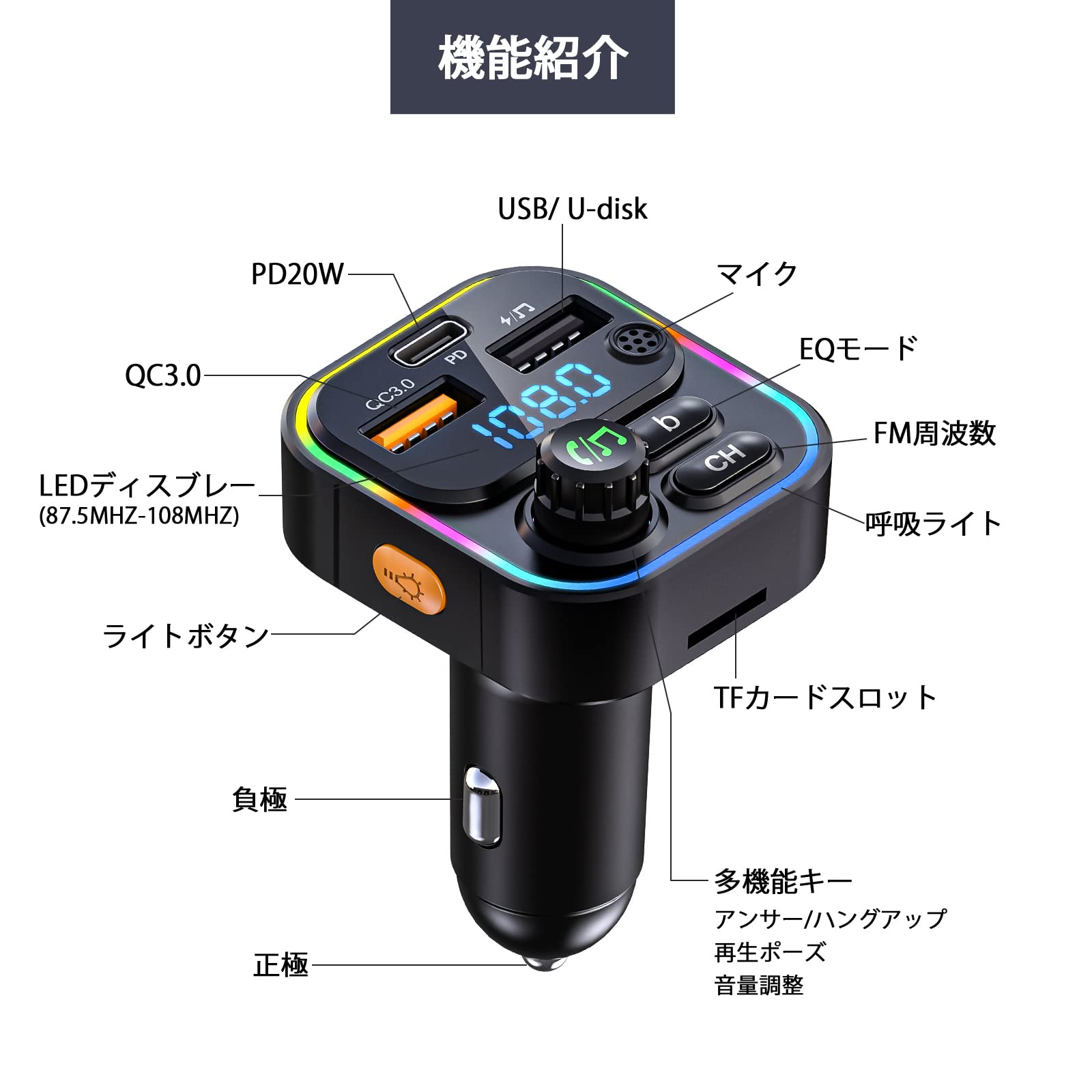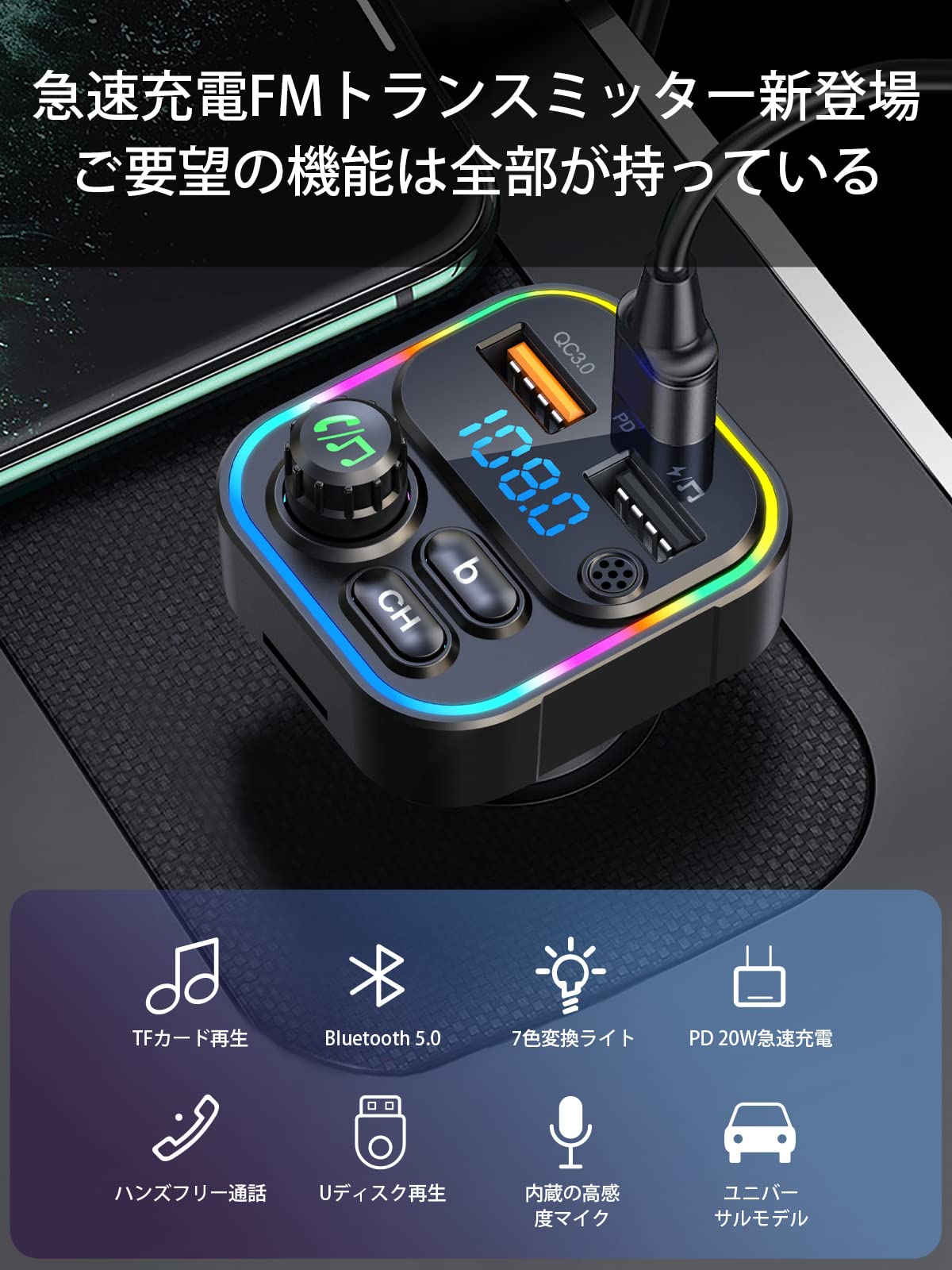 文章来源于互联网: FMトランスミッター Bluetooth5.0 車載充電器 FM transmitter 音楽再生 ーチャージャー ハンズフリー通話 電圧測定 microSDカード USBメモリ対応 12-24V車に適応 取り付け不要 7色変換ライト デジタル表示 日本語説明書 説明