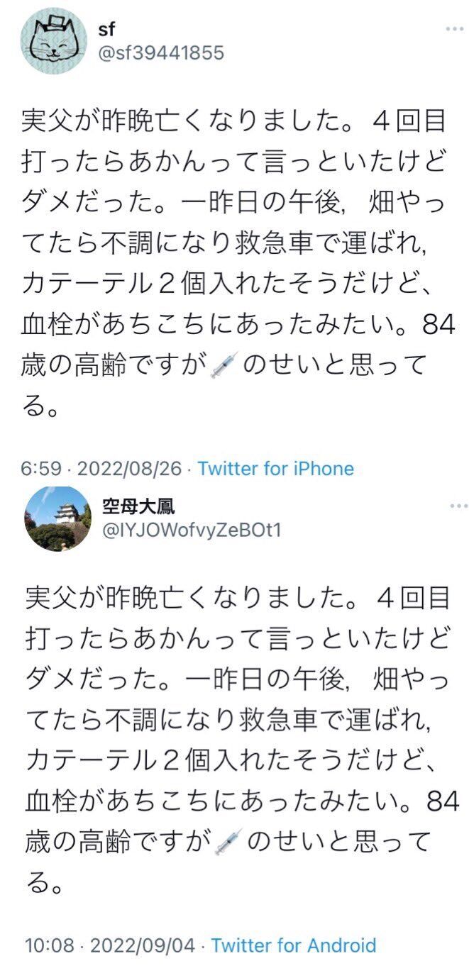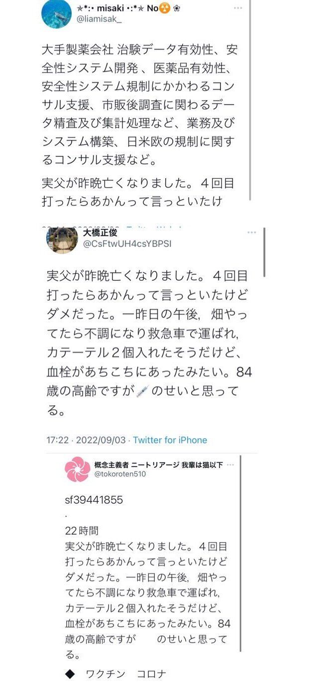 不知为何,接种第4次疫苗的84岁父亲相继去世。