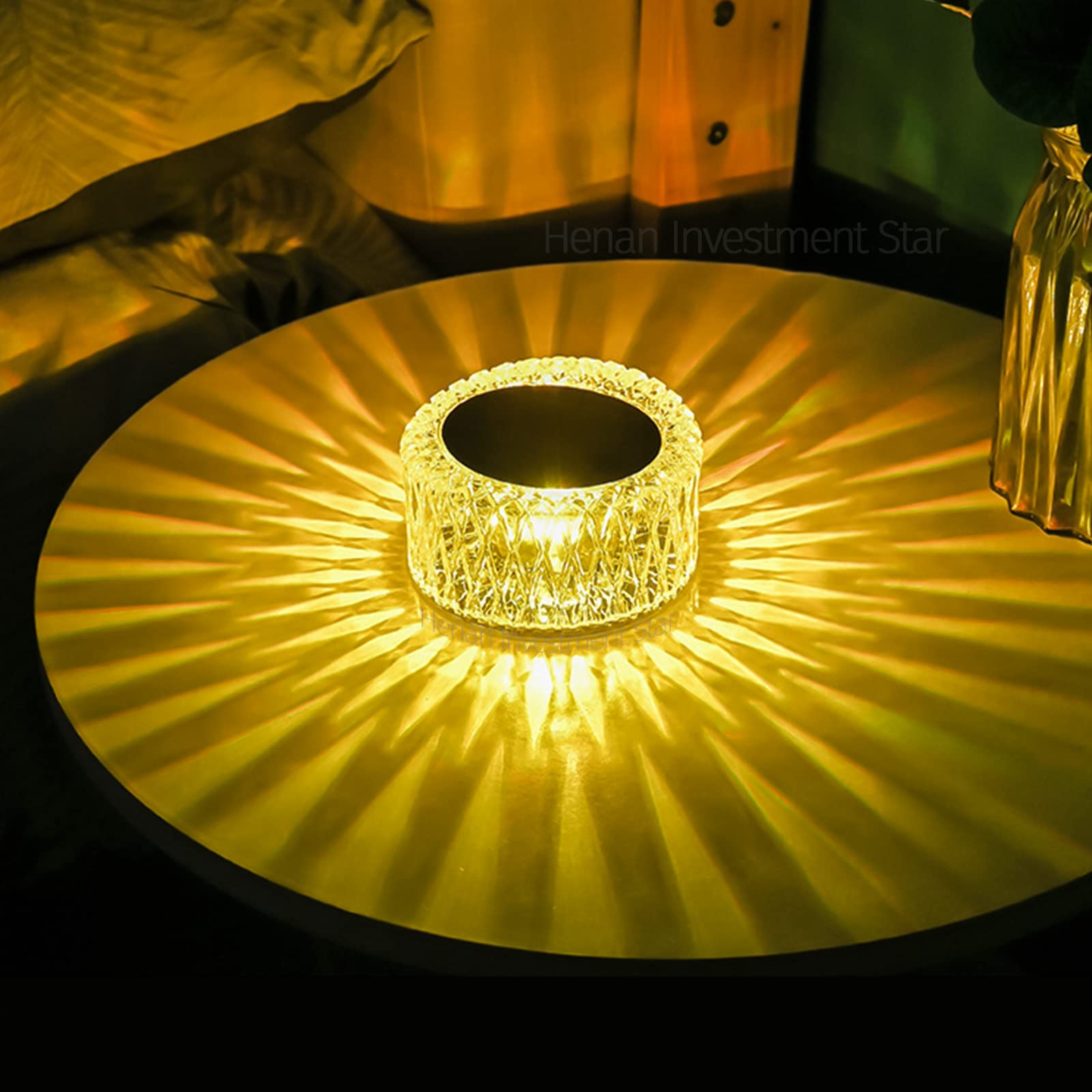 间接照明心情灯水晶支架灯水晶灯桌面触摸可调光小夜灯中式燕窝水晶灯亚克力3D小夜灯16色卧室大气桌面装饰充电支架灯适用于卧室客厅办公室装饰