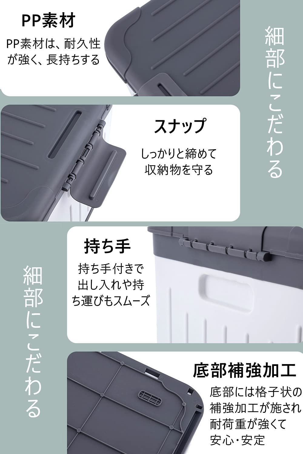 - 【使い方もさまざま】収納箱は見た目におしゃれで、お家の中でも外でも使え、丈夫で機能的です。季節ものの衣類やホビー用品、ストック品などを入れる収納ボックスとしてはもちろん、ガーデン用品、ペット用品、おもちゃ箱やお部屋の収納アイテムとしても活躍します。さらに、車内に、小型の工具やアウトドア用品などの収納に便利です。