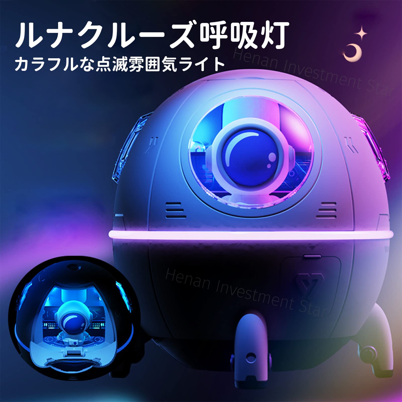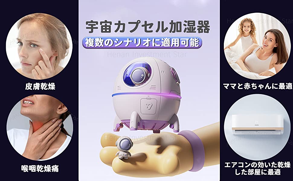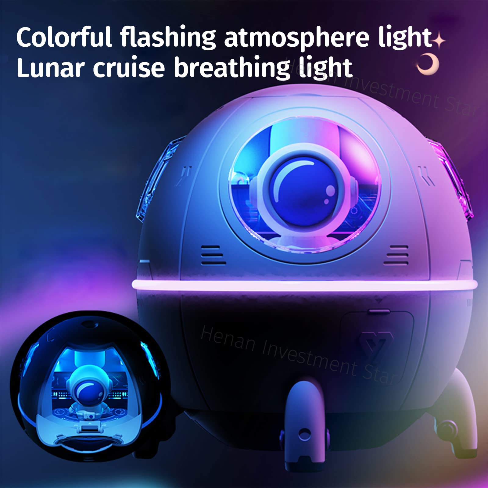 文件:胶囊加湿器,太空舱加湿器,超声波加湿器,宇航员加湿器,桌面加湿器,7色LED灯,透明喷雾,USB电源,内置电源容量,220ml,36db以下,静音设计,干燥,适合方便商店、家庭和学校(白蓝)