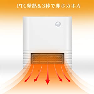 - 【3秒速暖&低騒音】セラミックヒーターをONにしてから、約3秒の短時間で温かい風を吹き出します。朝の体温は一日中で一番低いです、こちらのセラミックへーターであなたの朝を温めます。この暖房器優れたミュート機能は寝る時にも活躍できる、フットウォーマーとしてに最適なヒーターです。セラミックのヒーティングエレメント(熱源)の効果で素早く足元などを暖めます、この冬はもう寒くない