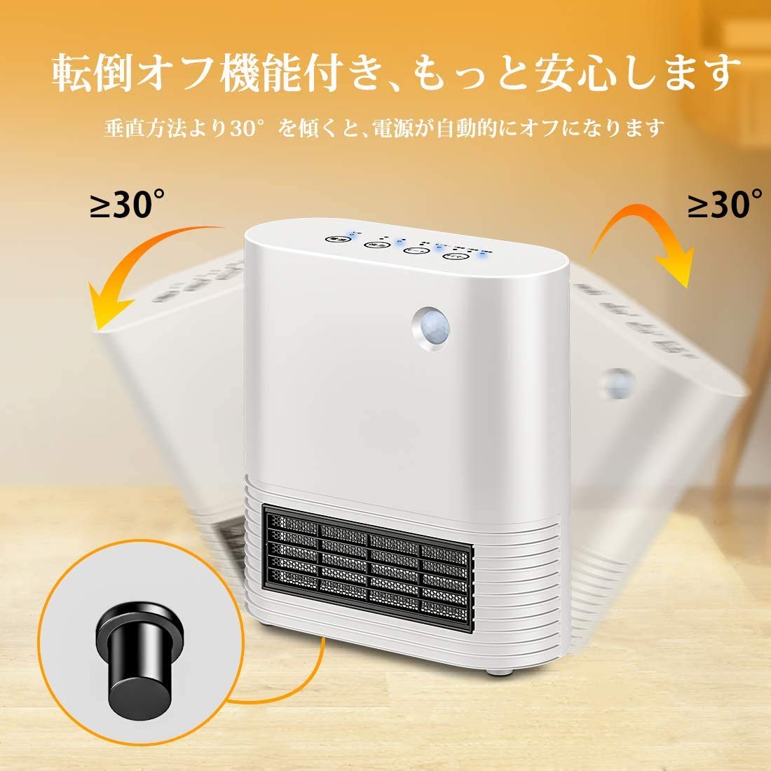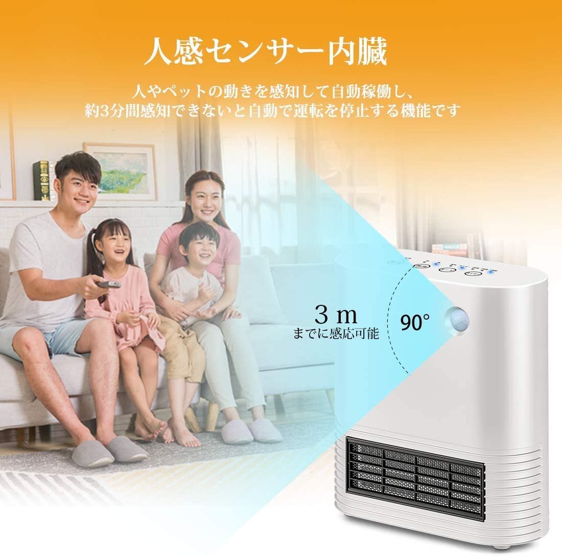 - 【人感センサー付きの最新型】人感センサーモードがあり、製品から3mの範囲で人やペットの動きを感知して自動稼動し、また、3分間以内に人やペットの存在を感知できない場合は自動的にスタンバイモードに入り、電力を浪費しません。スタンバイモードで8時間を経過すると自動に停止する、ヒーターの消し忘れによる事故を防ぎます。忙しいあなたに思いやりのあるデザインです