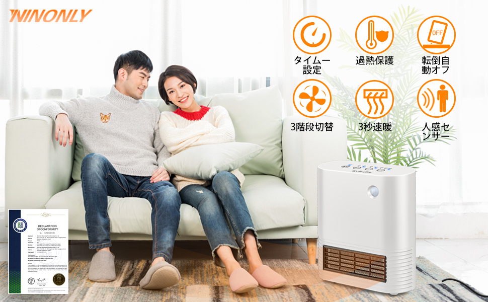 文章来源于互联网: Ninonly セラミックファンヒーター 人感センサー付き 電気ストーブ 転倒自動オフ 足元ヒーター 3秒速暖 3段階温度設定 電気ヒーター フットウォーマー タイマー機能 日本語説明書付き 暖房用具 小型 省エネ キッチン用 勉強部屋用 高齢者 女性 子供に適し