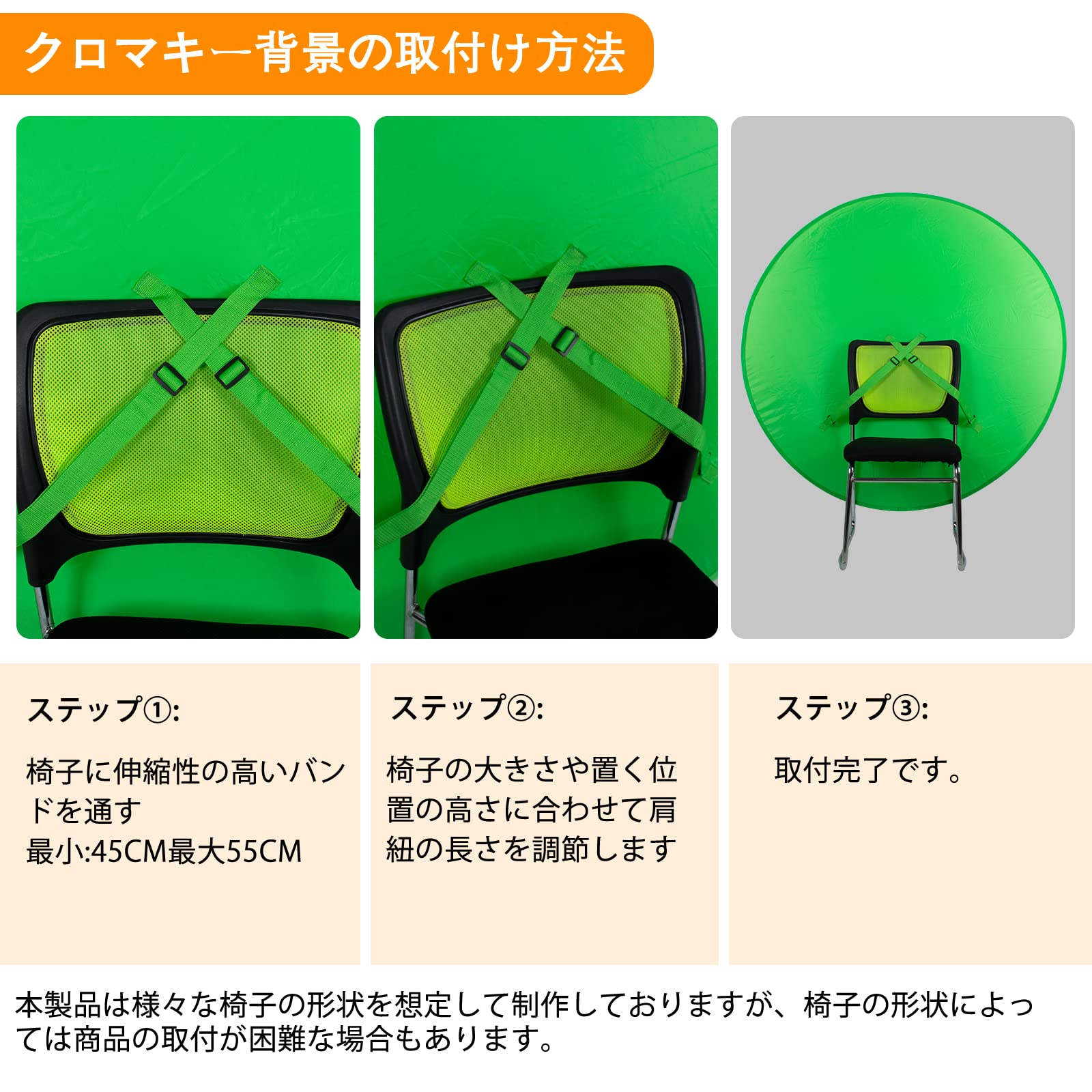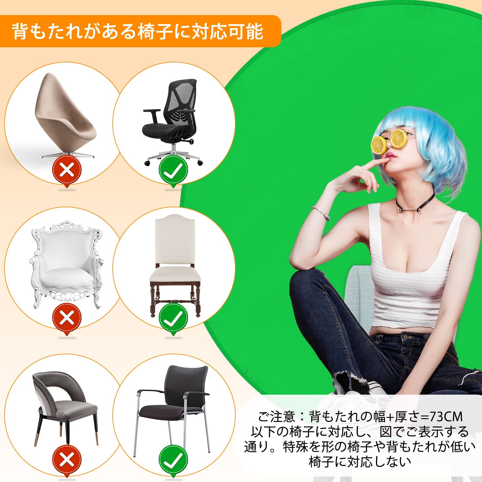 - 【特徴】:グリーンバックは背もたれの幅+厚さ=80㎝以下の椅子にに対応可能です。