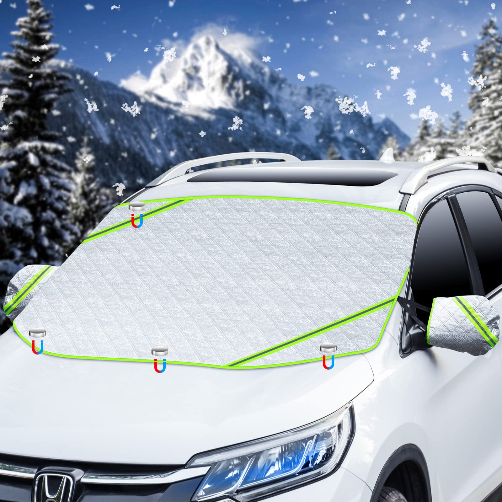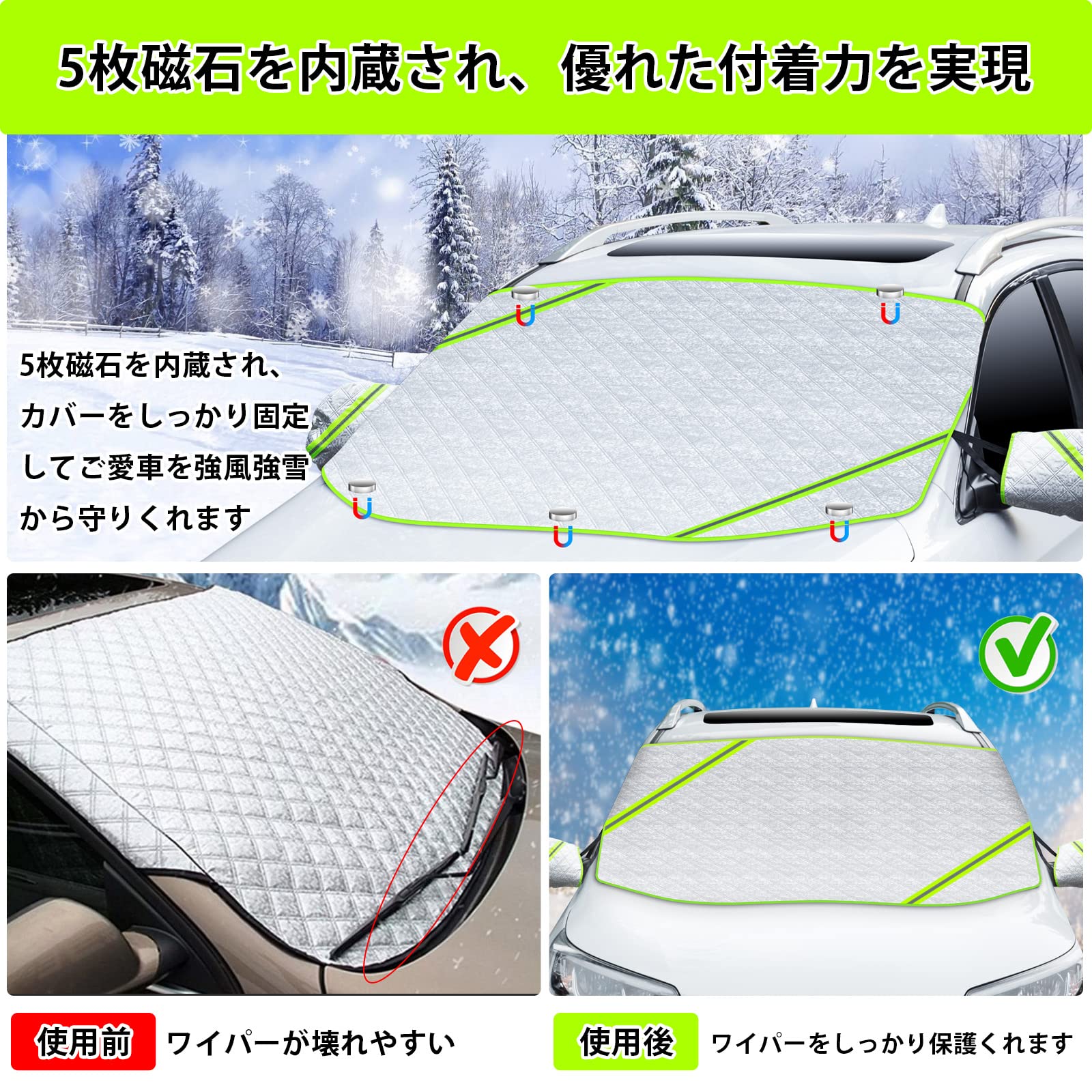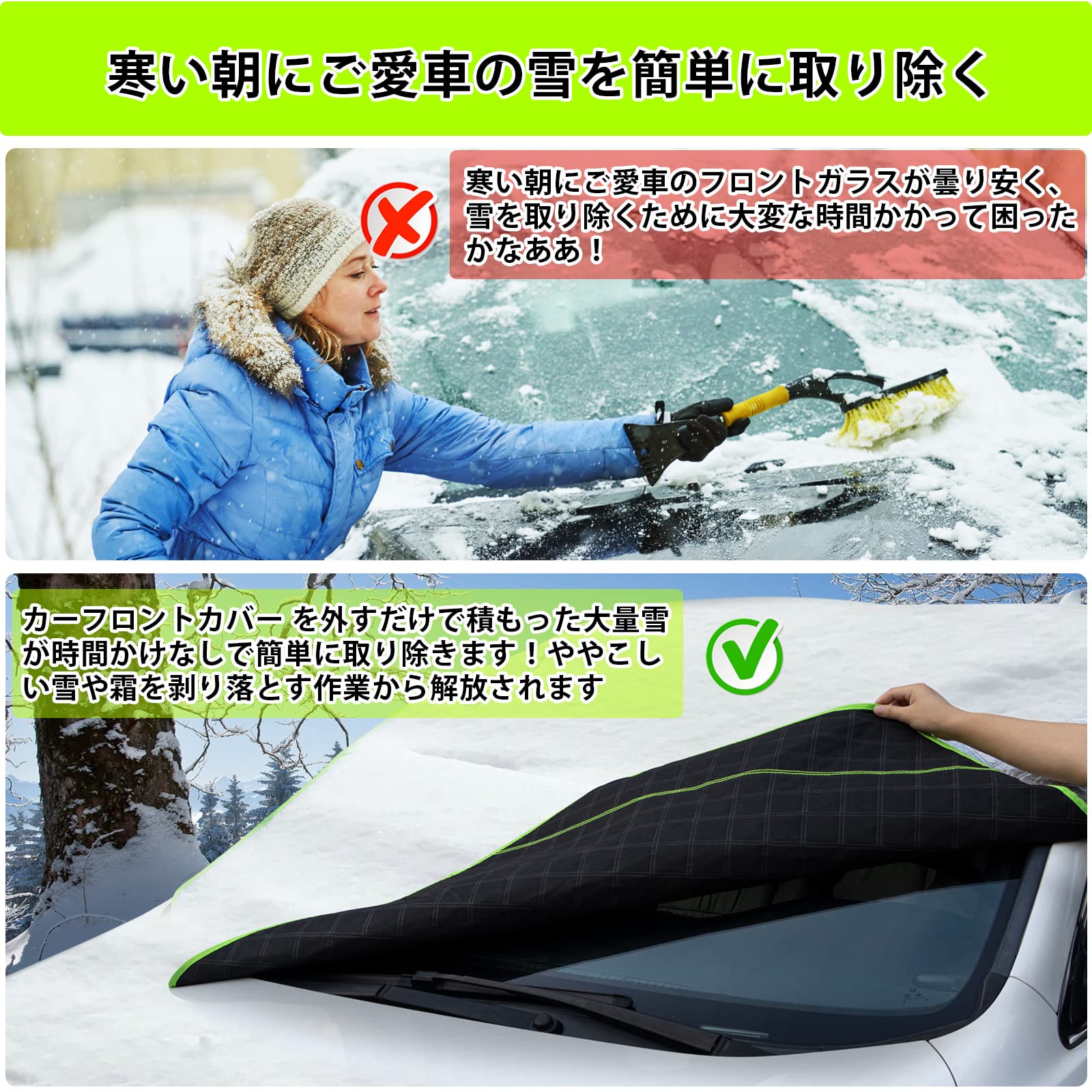 - 【積み雪凍結防止·紫外線遮断·黄砂対策】カーフロントカバーは寒い冬の時にフロントガラスの霜/雪/氷の積みを防ぐ、車をしっかり保護できます。カバーを取り外すだけで除雪ができ、追加の掃除がいらないので、時間が大幅節約することができ、忙しい朝から余裕な朝にチェンジ。本凍結防止車用フロントカバーはワイパーまで覆う、約99%の紫外線を遮断することができ、ワイパーも壊れにくい、ちゃんと保護します。黄砂も風も夜露もしっかり防いでいます。オープンエアーの屋外駐車場をご利用のお客様におすすめします。