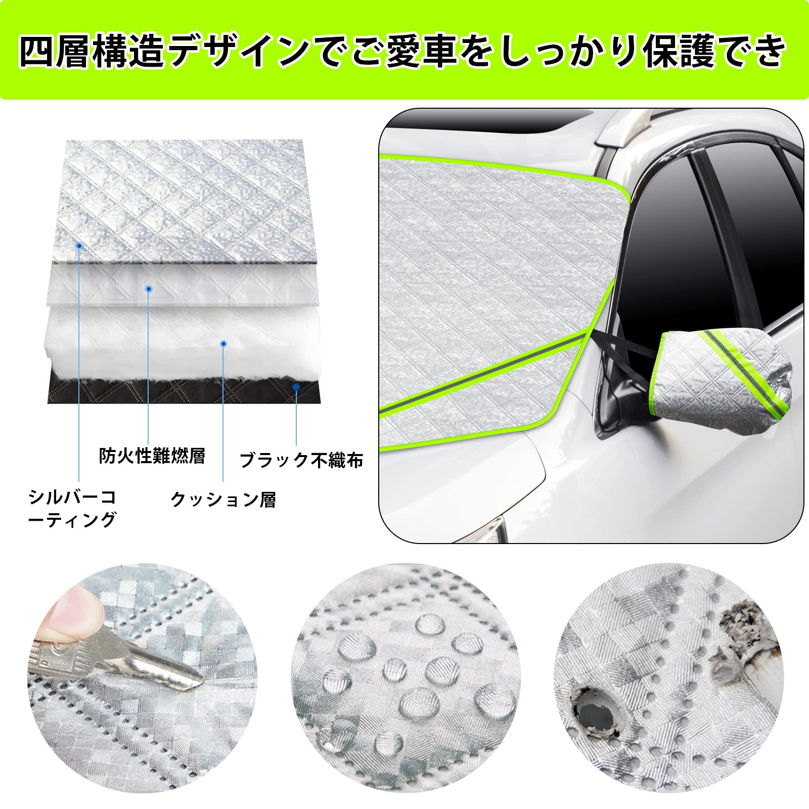 - 【高品質材料・四層構造】GOHHME車フロントガラスカバーは4層構造で構成されています-シルバーコーティング、防火性難燃層、クッション層、ブラック不織布。これらはPEVAアルミ箔、水刺不織布、保温性のある綿、PE不織布を使用しています。表面材料は優れた防水と防雪性能があり、耐久性のよいアルミ箔は耐火性も強い、丈夫なので傷もつきにくい。いろんな高品質材料を採用され、長く使用いただけます。