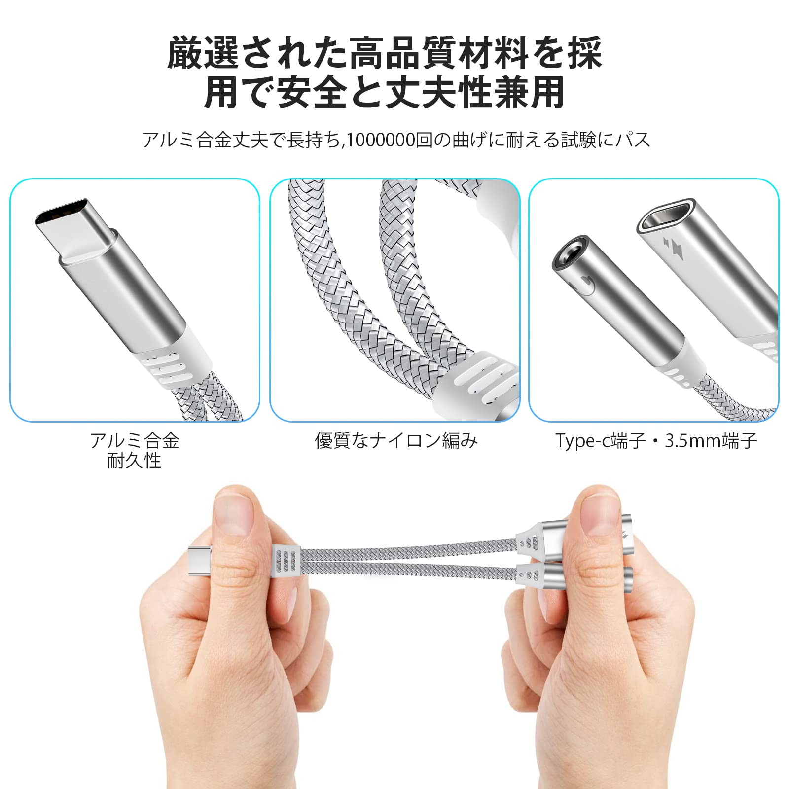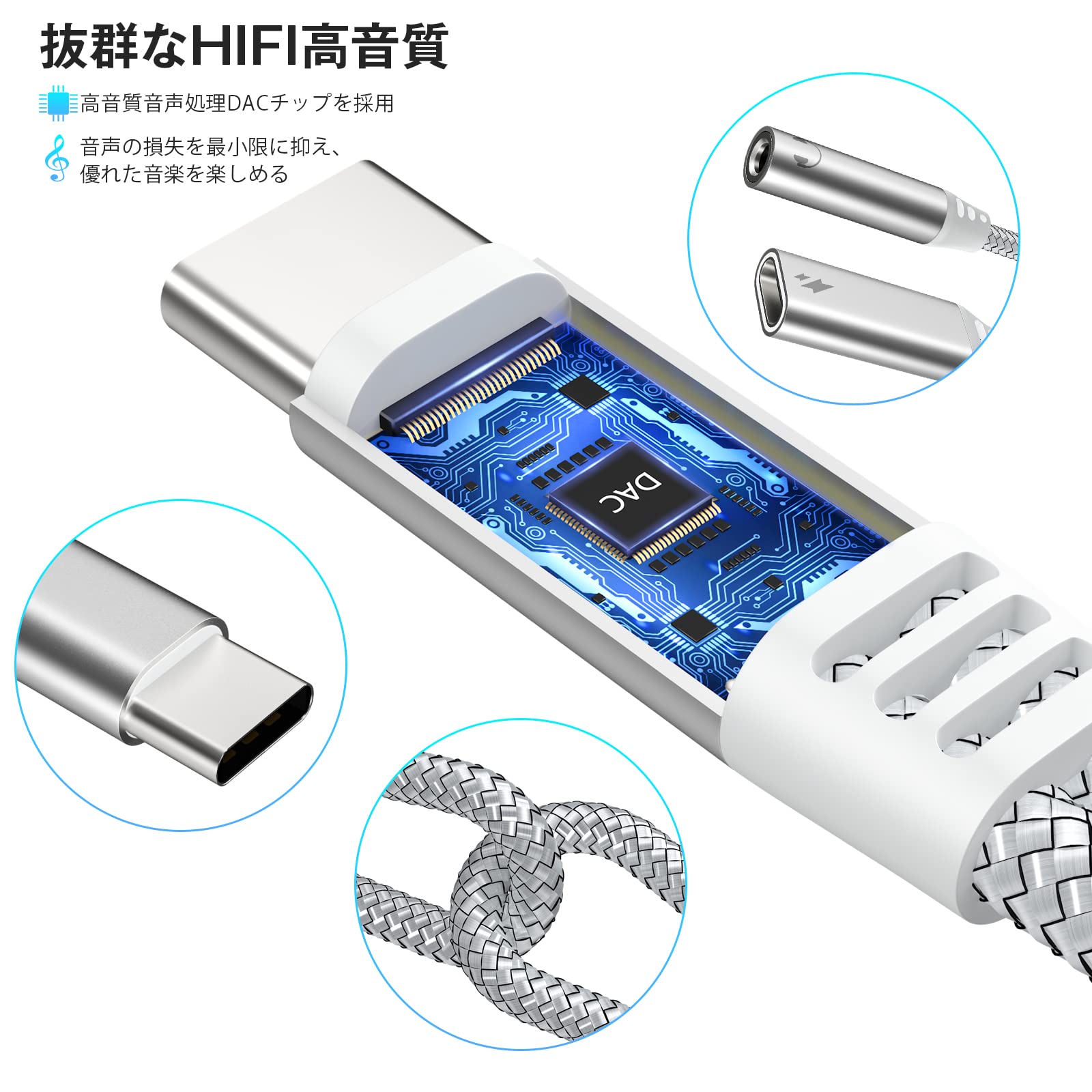 - 【音声出力・同時充電2in1 タイプC イヤホン変換】3.5イヤホン変換ケープルはUSB-Cポートと3.5 mmオーディオジャックに分割され、音楽を聴くと同時に電話を充電できます。なので、デバイスを急速充電しながら、同時に音楽鑑賞やビデオ視聴が可能になります。音楽聞きながら充電できの設計は大変便利でございます。ご注意:国際標準でないものの場合、異常が発生する可能性があります。