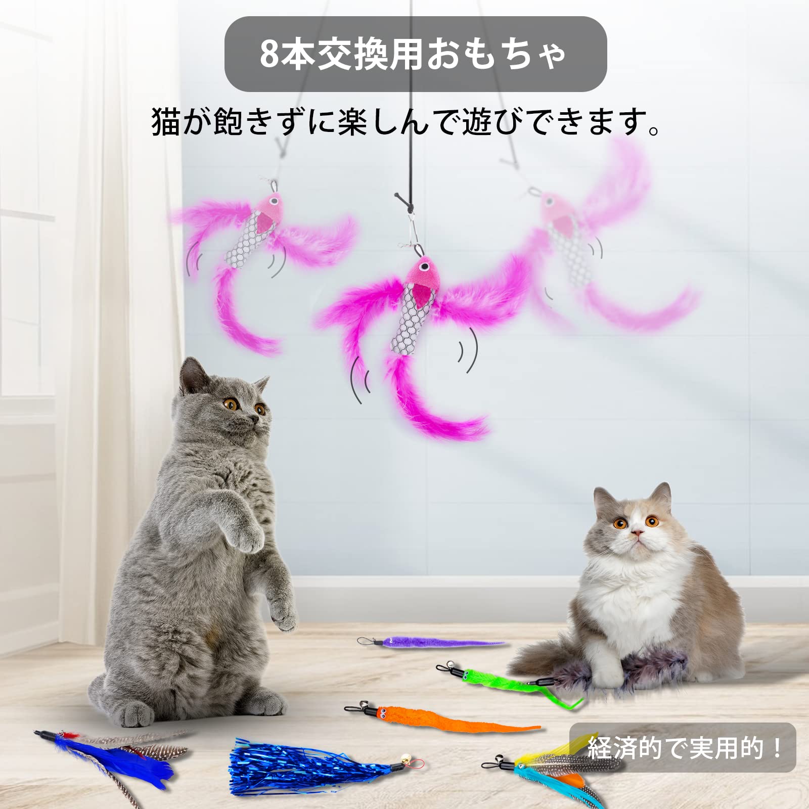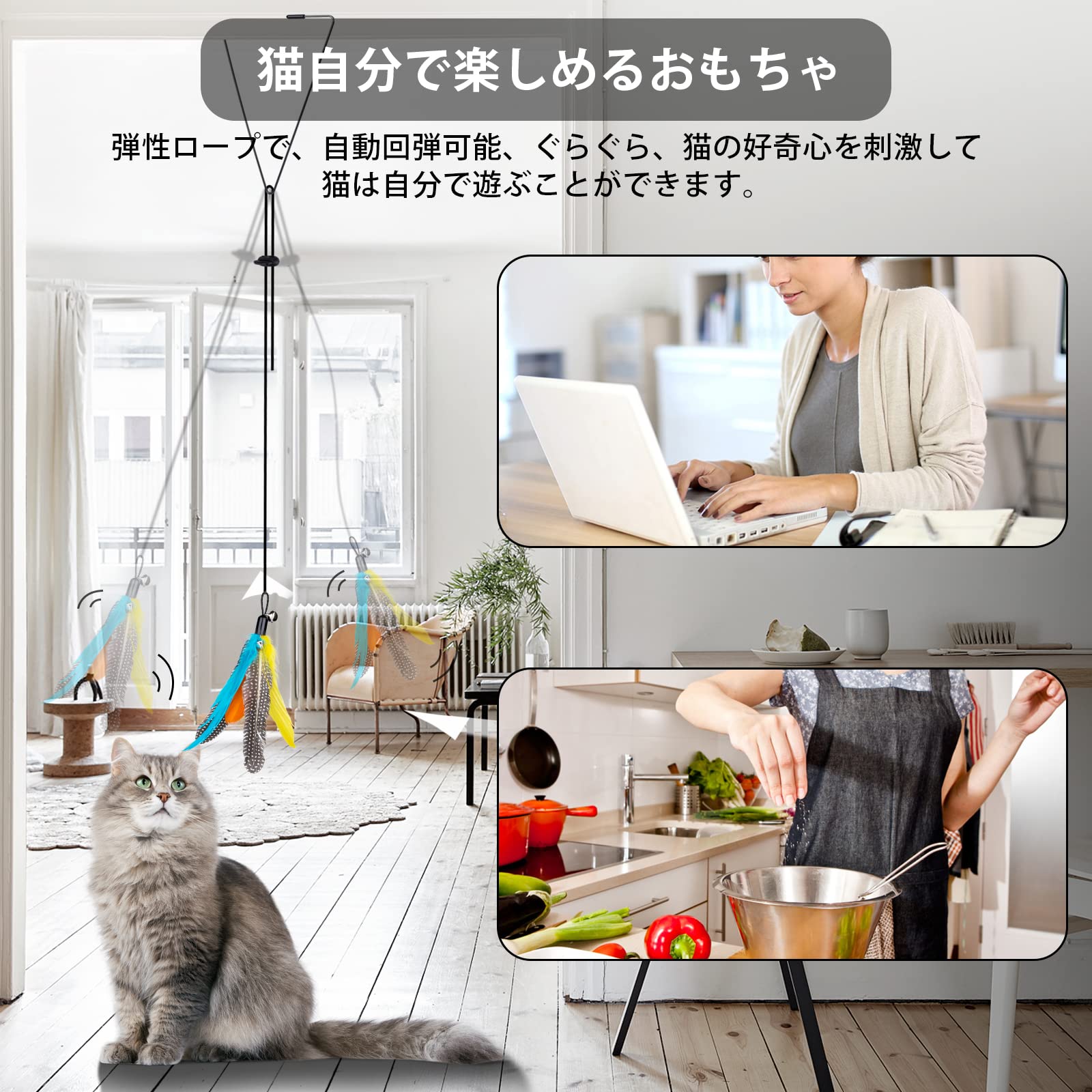 【猫自分で楽しめるおもちゃ】:鳥のおもちゃ+弾性ロープで、自動回弾可能、ぐらぐら、猫の好奇心を刺激して、猫は自分で遊ぶことができます。忙しい飼い主の両手を解放して、自由に猫自分のことをすることができます。もちろん、飼い主も弾性ロープを単独で使ったり、羽のおもちゃをかけたり、猫とやり取りしたり、遊んだりすることができます。