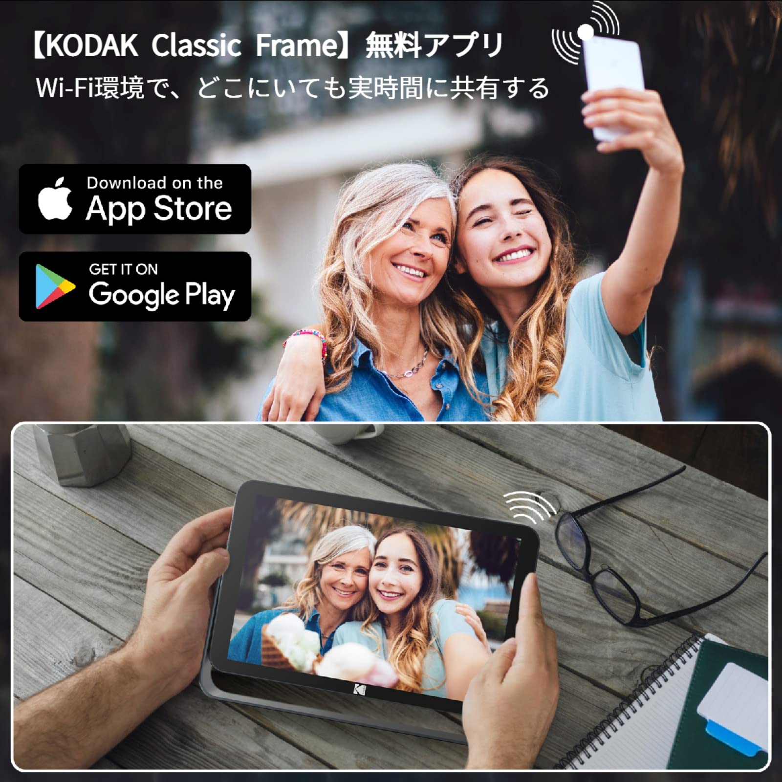 【2022新上市 1920*1080 FHD画面】KODAK Wifi 数码相框 32GB 触控面板 照片/视频播放 实时分享 最大64GB SD卡/USB存储对应 适合纪念日礼物
