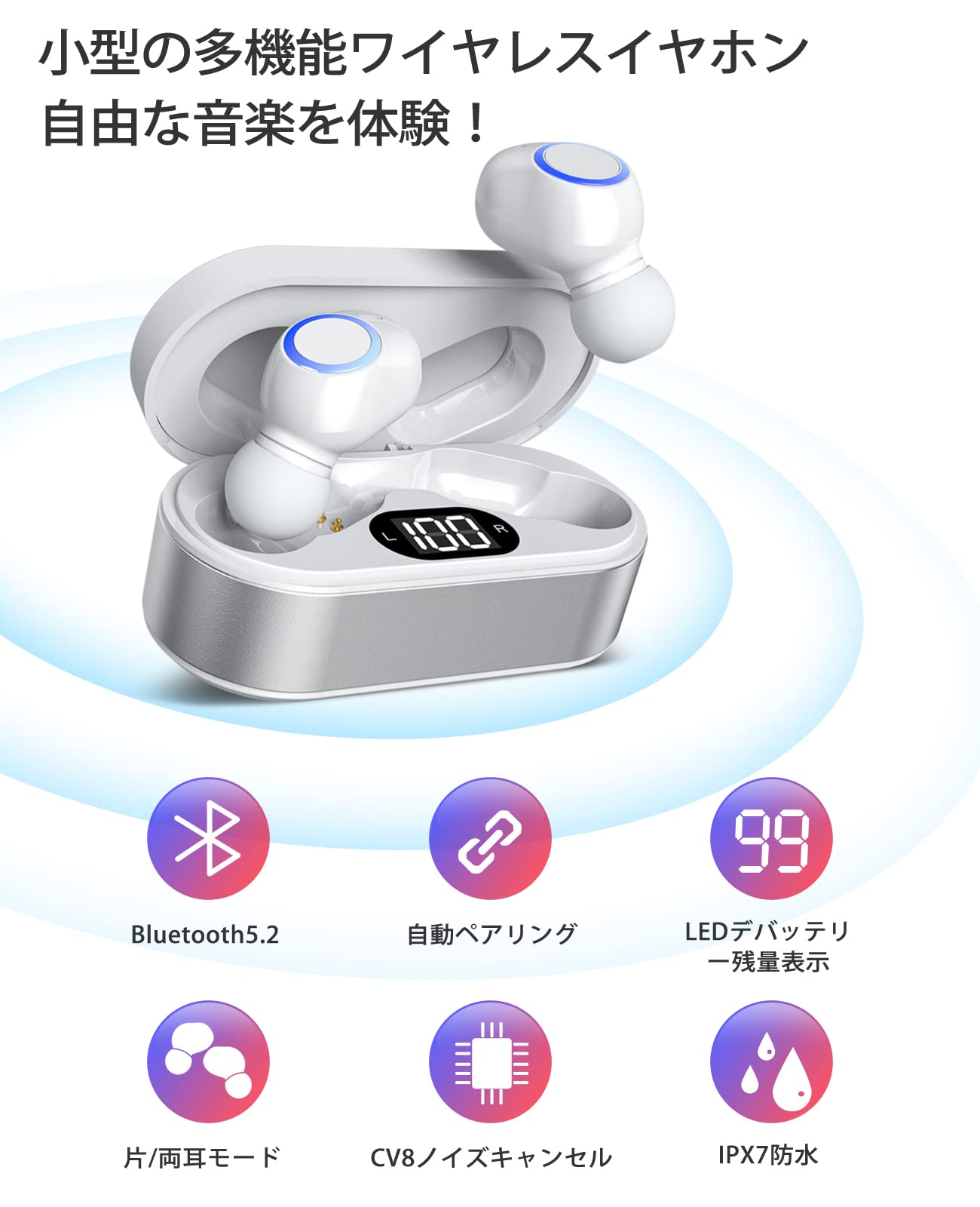 文章来源于互联网: Bluetoothイヤホン ワイヤレスイヤホン [新登場Bluetooth5.2+EDR] Monodeal Bluetooth ヘッドセット LEDディスプレイ残量表示 自動ペアリング 片耳/両耳 左右分離型 ブルートゥースイヤホン ハンズフリー通話 タッチ操作 小型 軽量 快適な装着感 スポーツイヤホン IPX7防水 CVC8.0ノイズキャンセリング マイク内蔵 音量調整 通話 /運動/ゲーム/通勤通学/テレワーク/ビジネス/WEB会議などに適用 日本語取扱説明書 ホワイト 描述 商品信息
