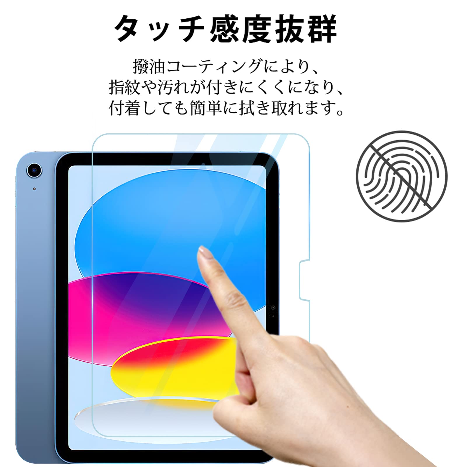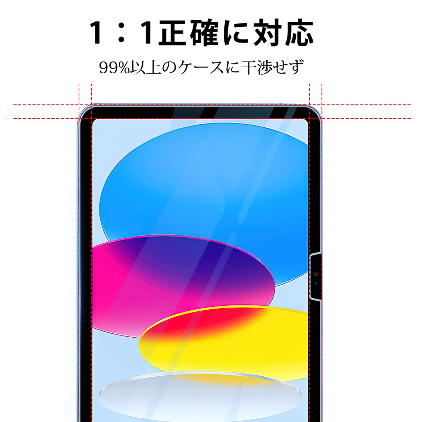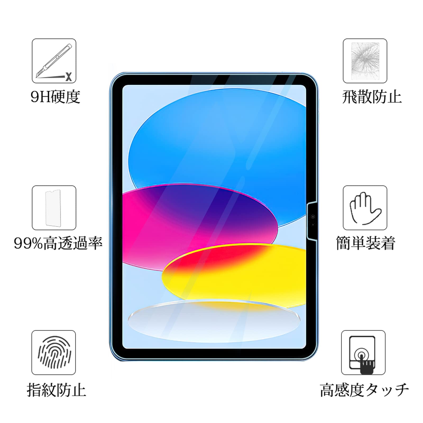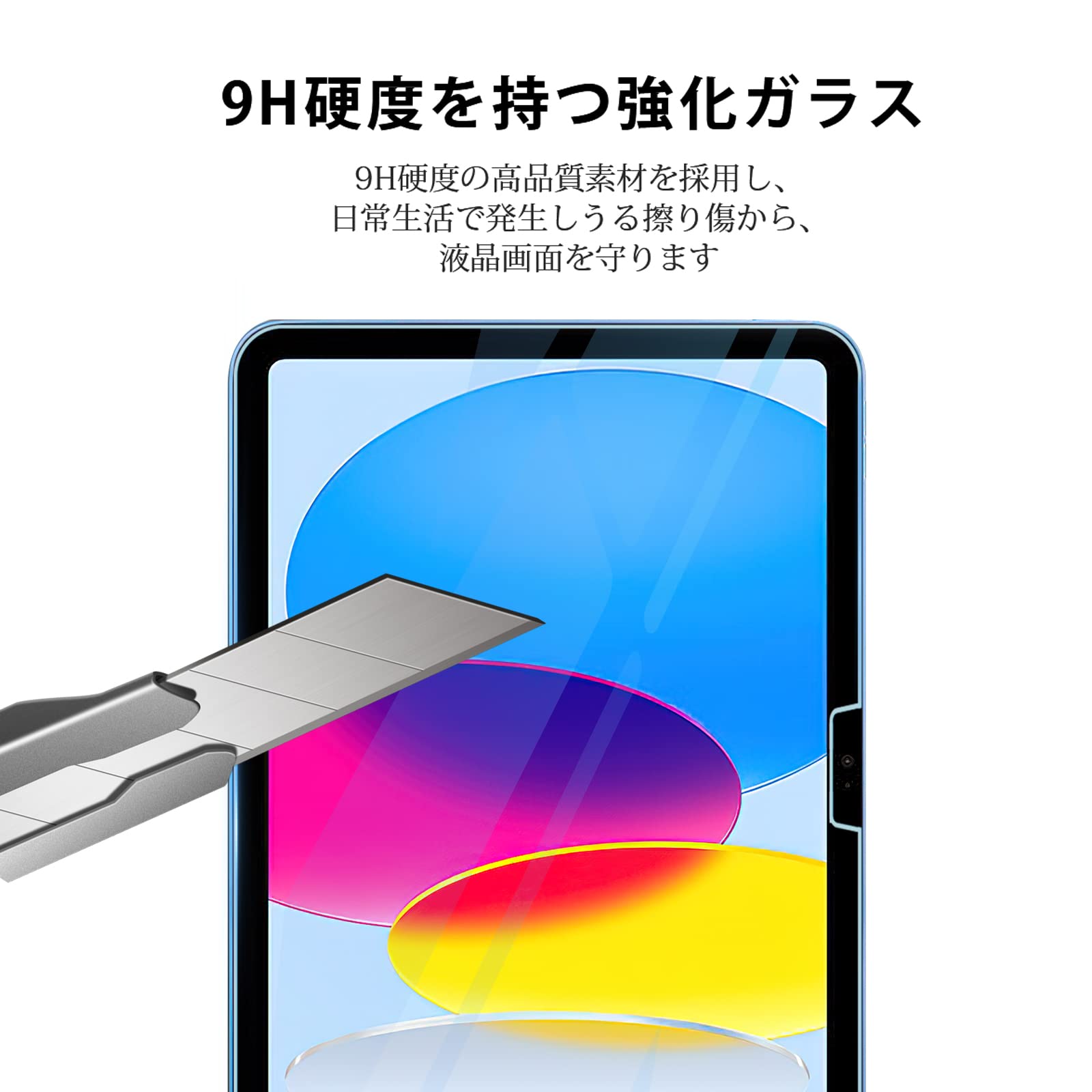 - 【高品質素材&9H硬度】iPad 第10世代 10.9 インチ 強化ガラスフィルムは日本製旭硝子の高品質素材を採用し、硬度が9H硬度に達しています。最高の硬度に強化されたプレミアムガラスは、鍵やその他の硬い物体によるひび割れや引っかき傷から画面を保護し、新品のような外観を保ちます。