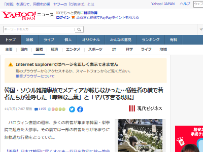 韓国・ソウル雑踏事故でメディアが報じなかった…犠牲者の横で若者たちが連呼した「卑猥な言葉」と「ヤバすぎる現場」(現代ビジネス) – Yahoo!ニュース