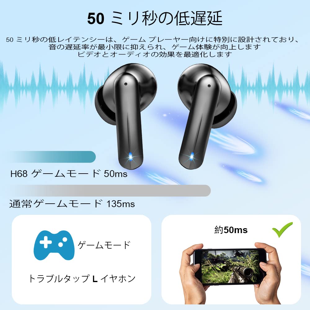 - 【音楽やゲーム? すべてが揃っています 】: ワイヤレスイヤホン bluetooth イヤホン、ユニークなステレオ デザインと 13 mm の大きな複合ダイアフラムを特長とし、低音が 43% 増加したパワフルなサウンドを実現し、豊かで忠実度の高い音楽に没頭できます。 左のイヤホンを 3 回タップするだけで、ゲームモードに切り替わります。 Bluetooth ヘッドセットの遅延は50ミリ秒と低く、デバイスの音声応答とほぼ同期しています。