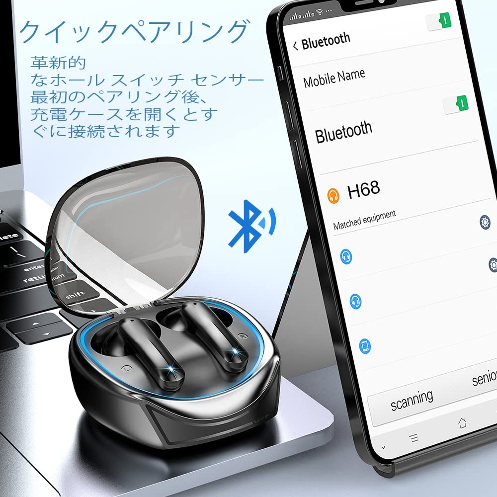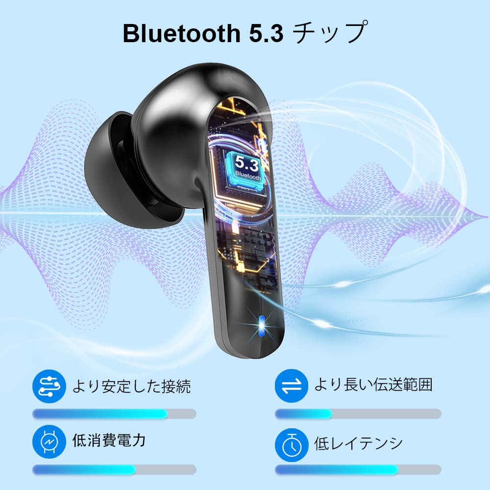 - 【革新なBluetooth 5.3技術、蓋を開けたら瞬時接続】:ワイヤレスイヤホン bluetoothは最新のBluetooth 5.3チップを採用し、前世代のBluetooth 5.0チップに比べて省電力と接続安定性が大幅に向上し、よりスムーズなゲームや動画視聴が可能になりました. 自動ペアリング機能が付きます。初回接続が済めば、次回以降の使用は本体を取り出さずに、充電ケースを開けるだけで自動的にペアリング設定済みのデバイスと再接続できます。