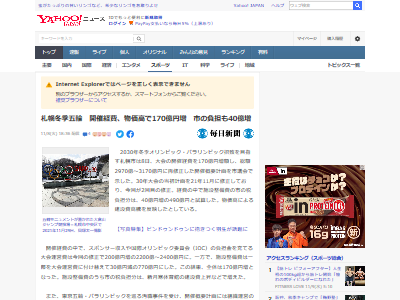 札幌冬季五輪 開催経費、物価高で170億円増 市の負担も40億増 – Yahoo!ニュース