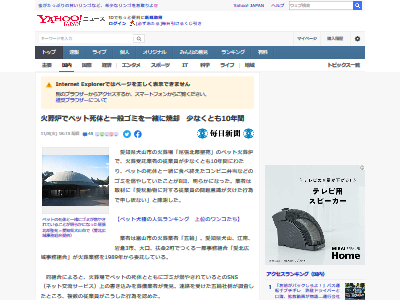 火葬炉でペット死体と一般ゴミを一緒に焼却 少なくとも10年間