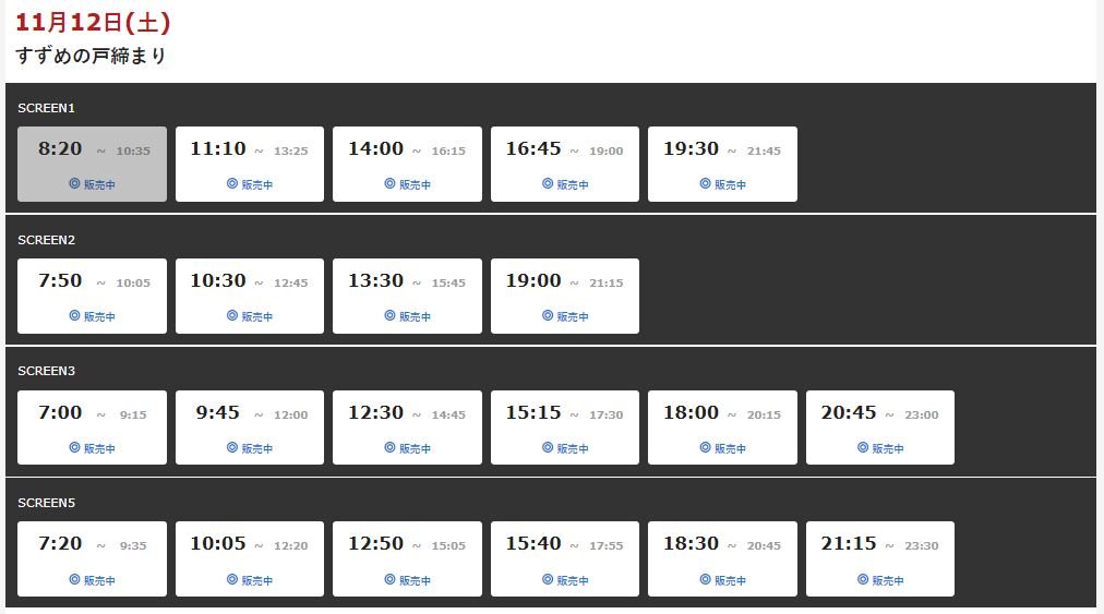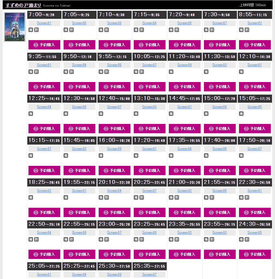 上映回数凄すぎて電車の時刻表みたいになってるやん