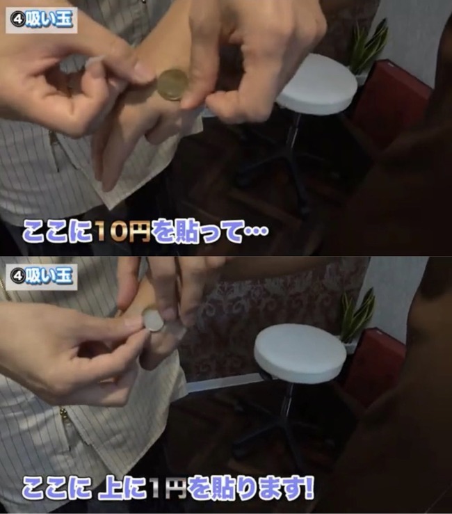 「金属的にプラスの10円玉とマイナスの1円玉を近づけると電池のような仕組みでガルバニー電流が流れるのを利用」「電波やWi-Fiによって人間の磁場がズレて調子を崩すため東洋医学で改善する」という主張のようです。 pic.twitter.com/2G6LY7RXMH