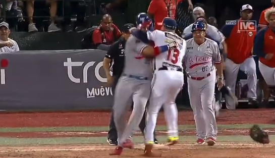 【暴挙】ベネズエラ野球で大乱闘 ホームラン後に守備選手がパンチ見舞うpic.twitter.com/HBQXm1FFrb