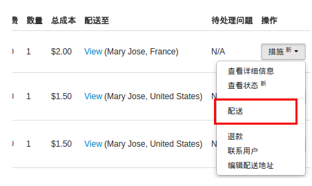 您也可以一次性的将多个订单标记为“发货”状态。选择您想要标记发货的订单: