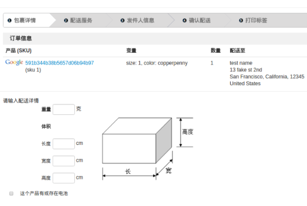 点击”下一步”按钮将订单标记为已发货。完成此操作后用户会收到一条通知,提示(1)购买的产品已发货;(2)订单的物流信息。