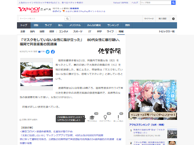 “我对一个不戴口罩的女人生气” 涉嫌袭击80多岁的女人,在福冈雅虎逮捕了一名火车乘客!新闻