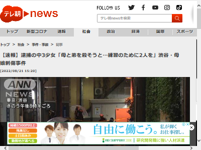 在涩谷刺伤父母和孩子的中3女孩“我想过杀死我的母亲和兄弟,但我没有勇气,所以我在练习中刺了他们。”