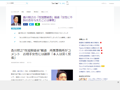 周刊报道称,2019年7月,他在东京银座的一家俱乐部性侵了一名女主人,受害者患有创伤后应激障碍(PTSD)。