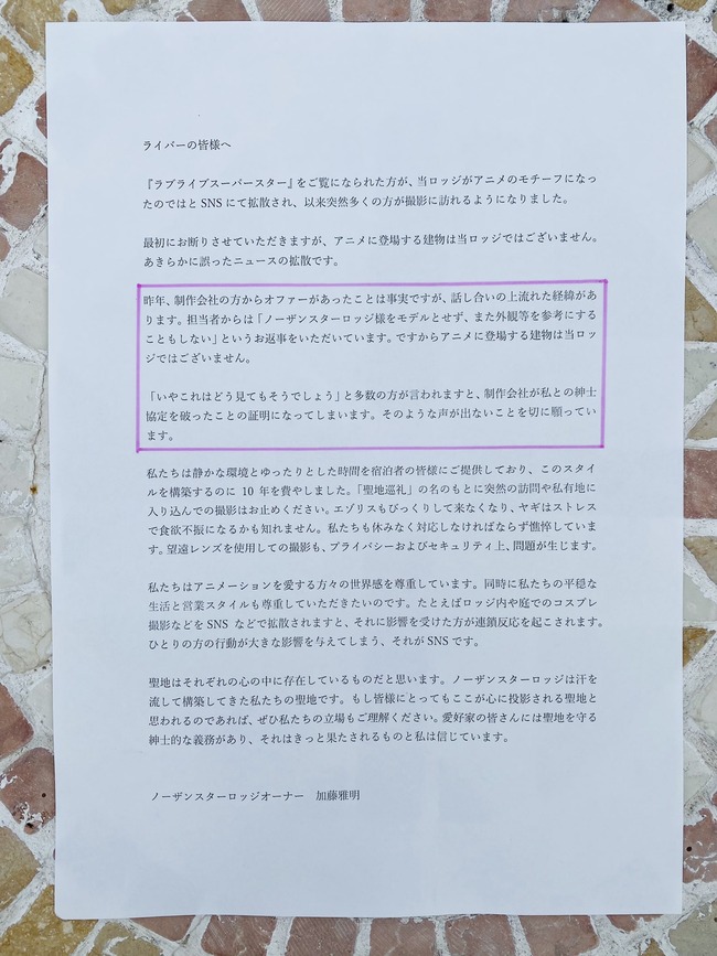 对于给北极星小屋、当地居民和其他相关方,以及所有支持“Love Live!巨星!!”的人带来的关注和不便,我们深表歉意。 .