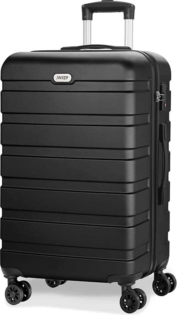 境外淘货 [AnyZip] スーツケース キャリーケース キャリーバッグ 超軽量 大型 静音 ダブルキャスター 耐衝撃 360度回転 TSAロック搭載 ファスナー式 かわいい おしゃれ 旅行 ビジネス 出張 (Mサイズ(60L) ブラック)