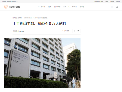 今年上半年出生人口首次跌破40万 - 路透中文网今年1月上半月至6月出生的婴儿数为384,942个值)。据该部称,这是自2000年以来上半年游客人数首次降至40万人以下。由于新冠疫情旷日持久,似乎有些人因担心感染而不敢怀孕。初步数字还包括外...
